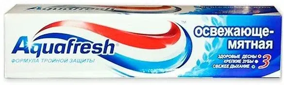 Зубная паста Aquafresh Освежающе-мятная обеспечивает тройную защиту полости рта.* Формула Sugar Acid Protecion в составе пасты содержит фторид и помогает защитить зубы от пагубного воздействия кислот. Отбеливающие микрочастицы глубоко отбеливают зубы, обеспечивая белоснежную улыбку и создают вокруг зубов невидимую защитную оболочку.